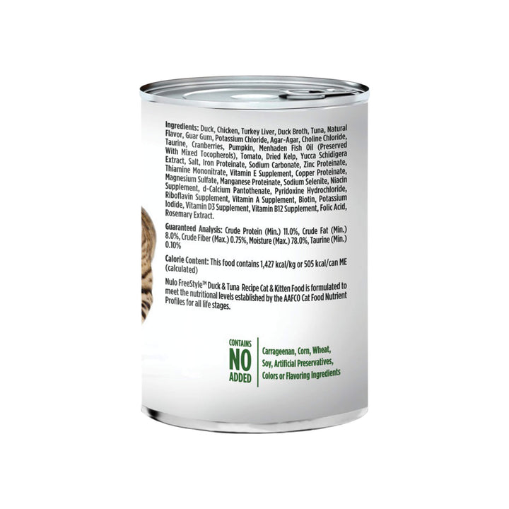Nulo Duck & Tuna Recipe Cat & Kitten Food is formulated to meet the nutritional levels established by the AAFCO Cat Food Nutrient Profiles for all life stages.
