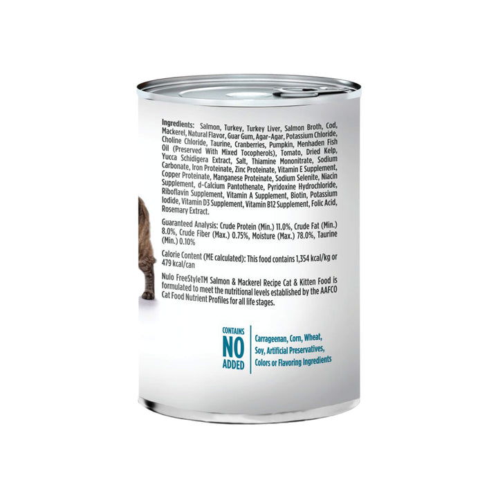 Nulo Salmon & Mackerel Recipe Cat & Kitten Food is formulated to meet the nutritional levels established by the AAFCO Cat Food Nutrient Profiles for all life stages.