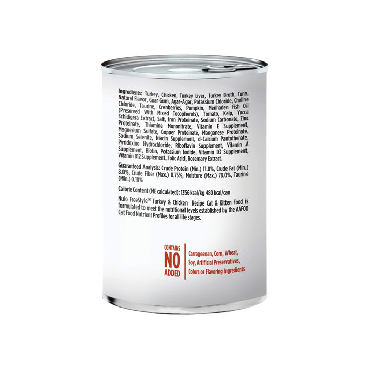 Nulo Turkey & Chicken Recipe Cat & Kitten Food is formulated to meet the nutritional levels established by the AAFCO Cat Food Nutrient Profiles for all life stages.