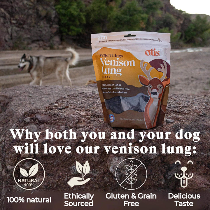 Reward your pup with O.T.I.S. Wild Things Lung Filets for Dogs—pure, air dried treats made simple for naturally healthy snacking.