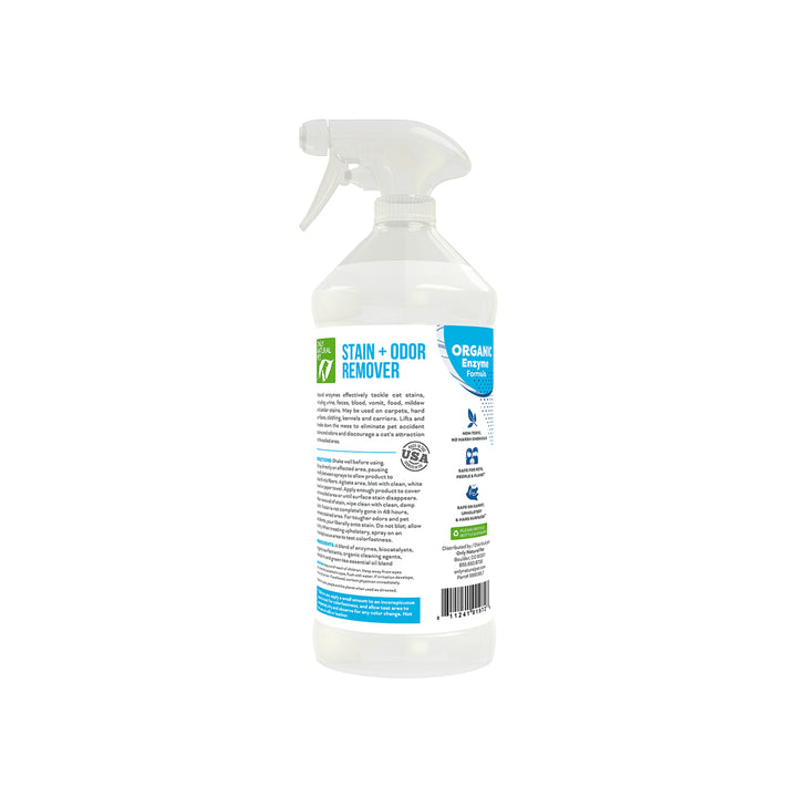 Only Natural Pet Cat Stain & Odor Remover completely eliminate the toughest pet accidents and stains with all natural ingredients. This handy spray uses an effective and unique organic enzyme blend that attacks stains and odors resulting from urine, feces, vomit, blood, food, mildew and similar causes. These, combined with organic surfacants and cleaning agents work to clean carpet, upholstery and hard surfaces.