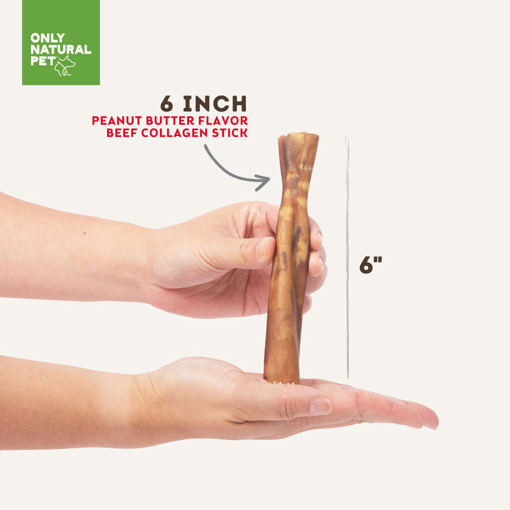 Discover your dog's favorite peanut butter flavor bone today with the Only Natural Pet Collagen Beef Stick Peanut Butter Flavor Dog Bone.