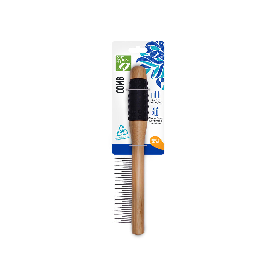 Perfect for gently detangling. The Only Natural Pet Comb for dogs is perfect for medium to long hair dogs. Detangle and clean your dog's coat with this sustainable bamboo handled brush.