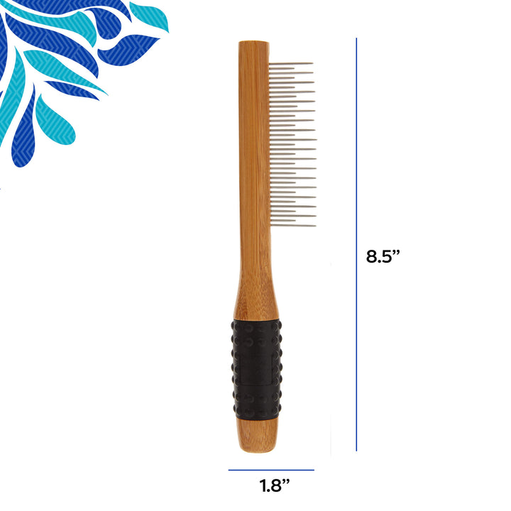 Only Natural Pet Comb for dogs features eco-friendly bamboo with rotating stainless steel teeth. Designed to easily glide through your pet's coat to remove tangles, the rotating teeth ensure minimal discomfort and gentle grooming. Ideal as a finishing and fluffing tool.