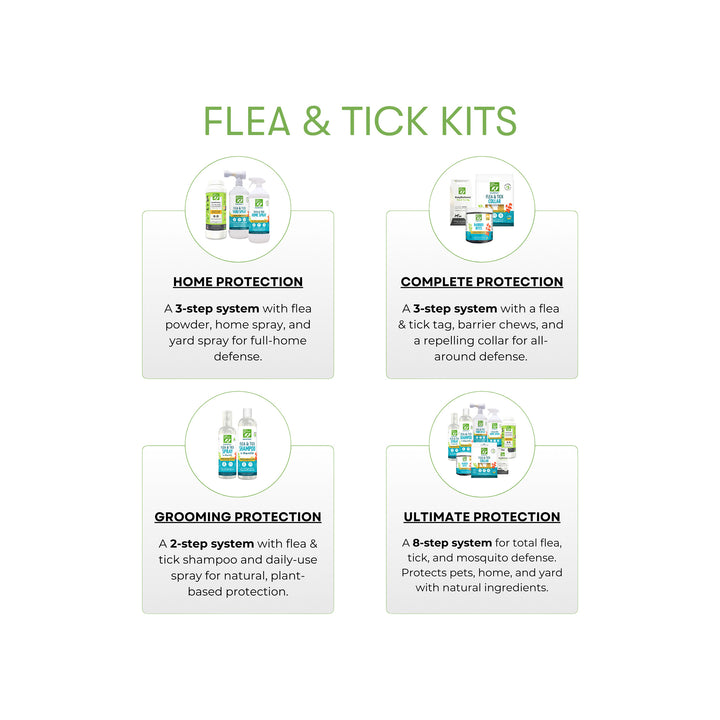 Each kit is carefully curated to target fleas and ticks at every stage of their lifecycle, offering a multi-step defense for pets, home, and outdoor spaces. Whether treating infestations or maintaining year-round prevention, these natural solutions are safe and effective when used as directed.
