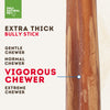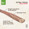 Extra Thick Bully Sticks are a single-ingredient treat sourced from grass-fed, free-range cattle.