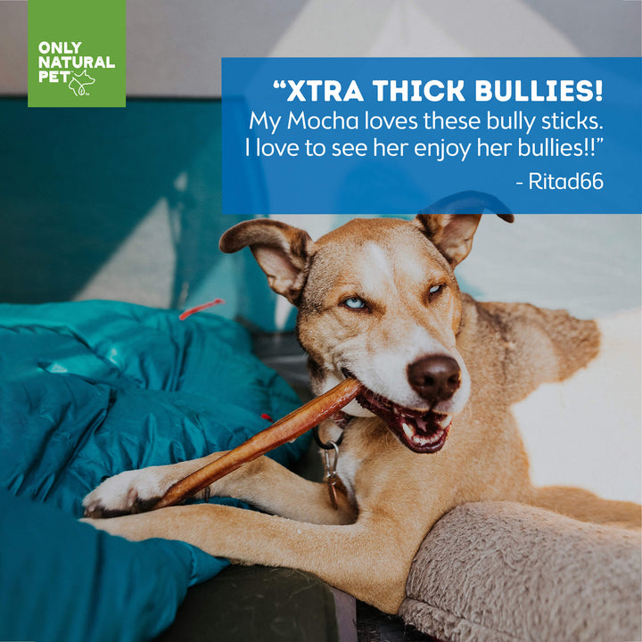 Looking for a healthy, long-lasting chew that your dog will love? Keep the tough chewers in your home busy with Only Natural Pet Free-range Extra Thick Bully sticks!