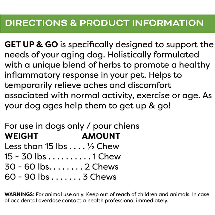 Get Up and Go dog supplement is perfect for senior dogs to support joint health and discomfort.