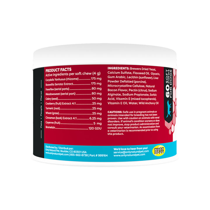 Support your dog's mobility with Only Natural Pet Get Up and Go Dog Supplement . This holistic formula includes corydalis for dogs, feverfew, and turmeric, maintaining a healthy inflammation response and supporting discomfort from normal aging and activity. Developed by holistic veterinarians and made in the USA, this grain-free supplement has no artificial additives. The delicious bacon flavor and soft texture make it easy to administer, ensuring your pet enjoys the benefits of corydalis for dogs in every bite.