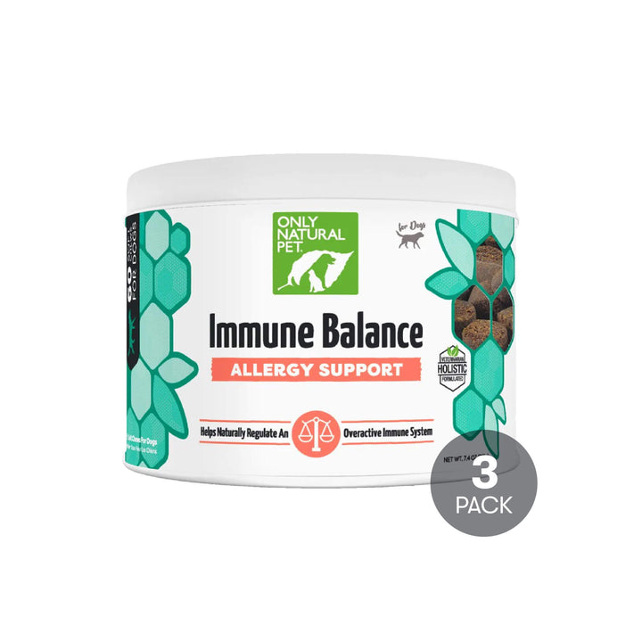Only Natural Pet Immune Balance Allergy Support proprietary blend features phytosterols, a powerful natural compound, that helps your pet maintain a healthy balance in their immune system, all without the side effects. Whether your pet is experiencing seasonal allergies, food allergies, or other immune concerns, this allergy immune supplement for dogs is ideal for excessive licking, congestion and discomfort.
