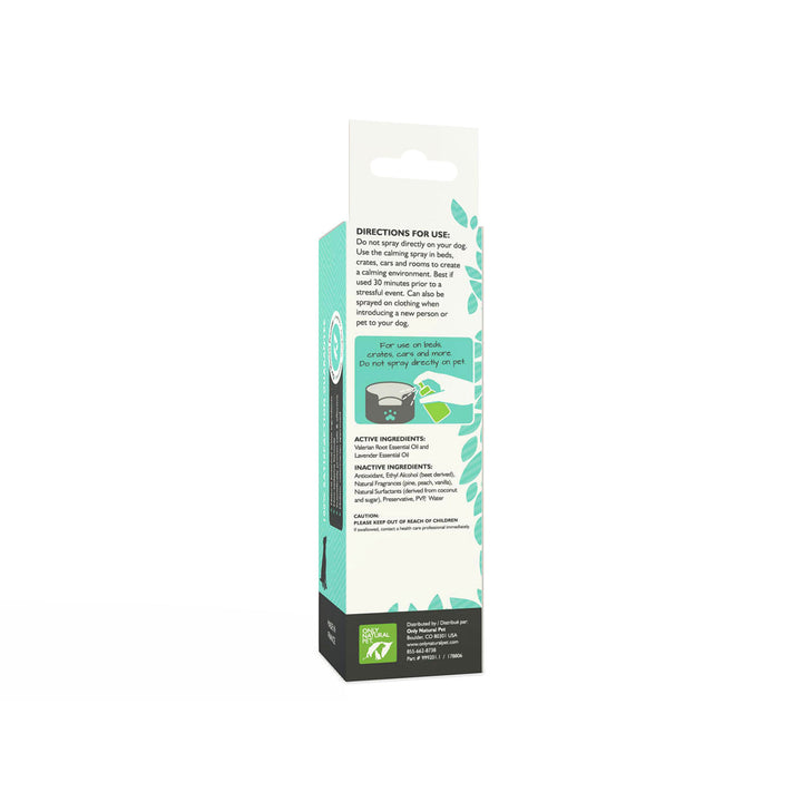 Only Natural Pet Just Relax Calming Spray combines the time-proven calming power of valerian root and lavender, Just Relax Calming Spray creates a calming environment for your dog using aromatherapy. As the essential oils disperse, the fragrance will leave a non-sedative, calming effect on your dog.
