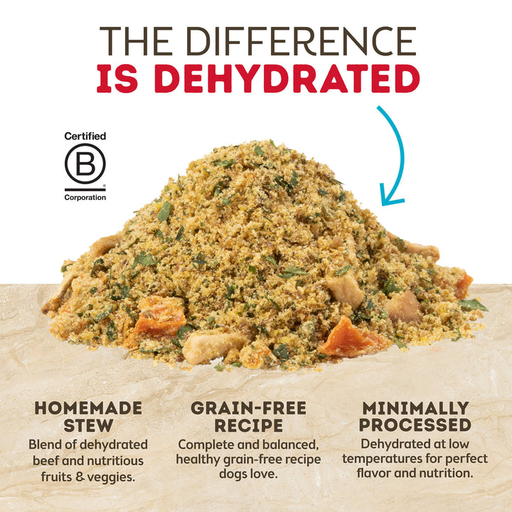 Due to the preparation process, dehydrated food packs in the flavor, making mealtime a drool-worthy experience for even the pickiest of dogs. Made with honest ingredients and free from artificial fillers, preservatives, and flavors, it’s easier than ever to feed your dog a high-quality diet without sacrificing flavor, convenience, or value.
