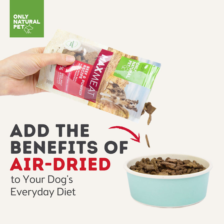 Discover your dog's new favorite treat and food topper with Only Natural Pet MaxMeat Air Dried Beef Dog Treat & Food Topper.