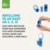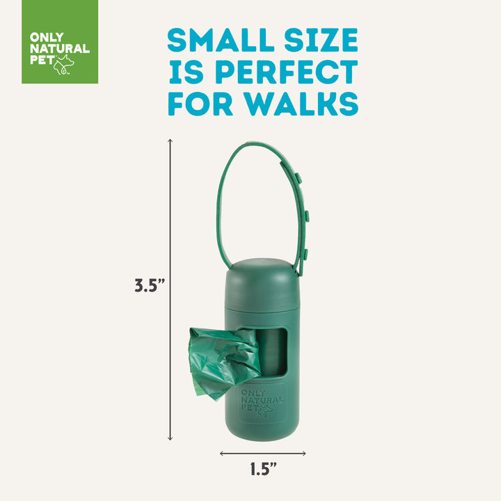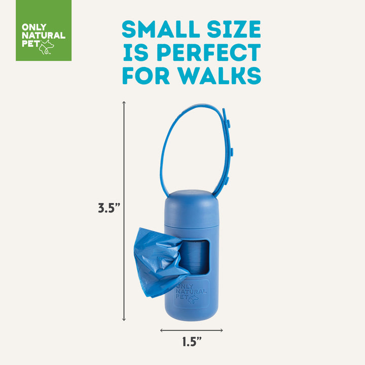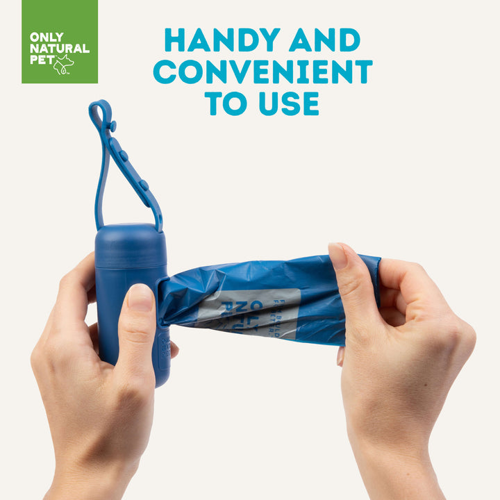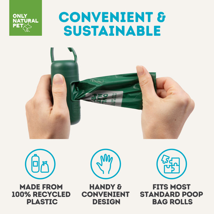 Only Natural Pet’s 100% Recycled Dog Poop Bag Dispensers are a lightweight, durable solution to make cleaning up after your pet easier. Simply loop and pull this post-consumer recycled dispenser around your leash, belt, or bag to secure it. Each dispenser comes with 1 roll of 15 large, recycled waste bags. When it’s time to refill, simply twist the top for a quick reload.