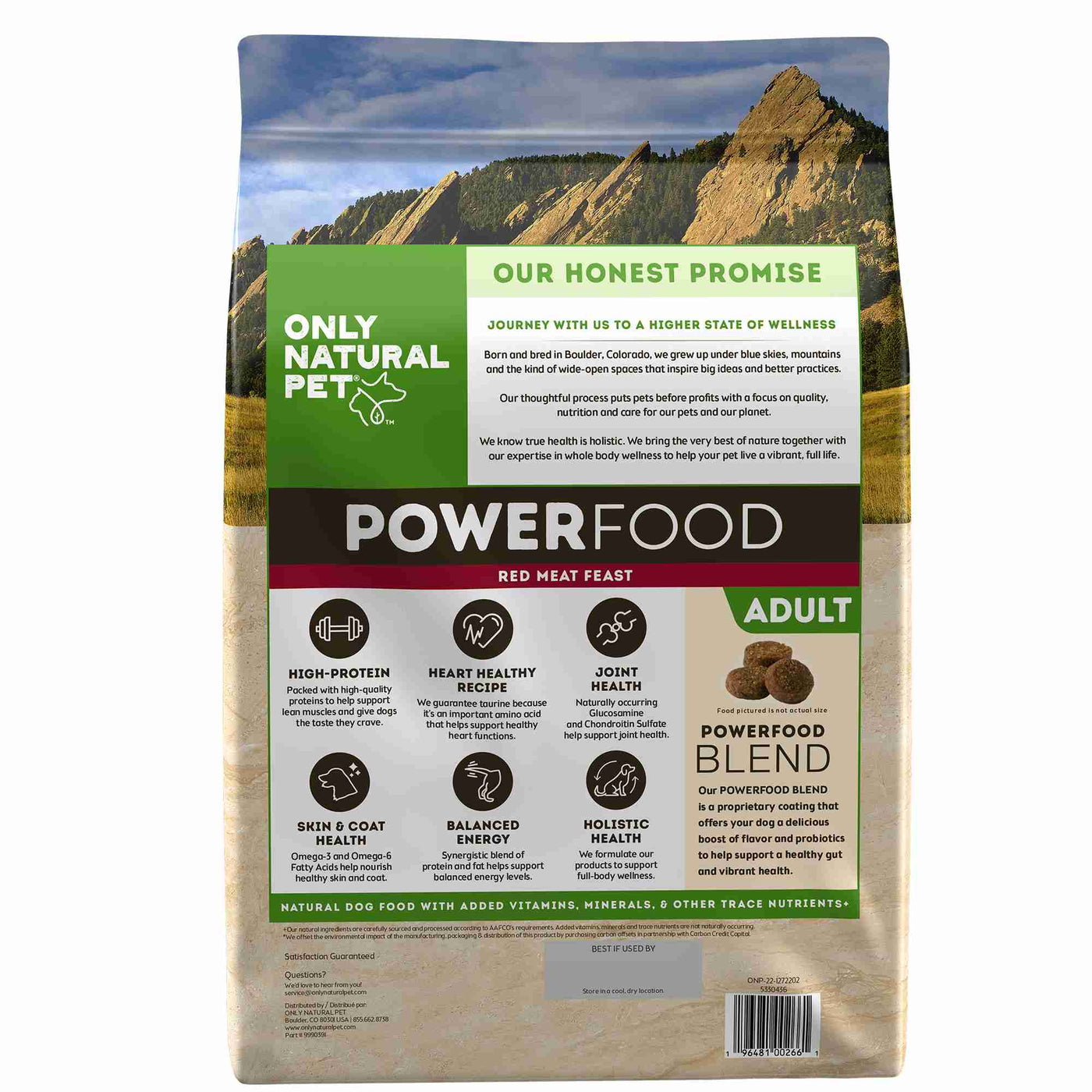 Discover the health and nutrition benefits of Only Natural Pet PowerFood Red Meat Feast Dog Food today.