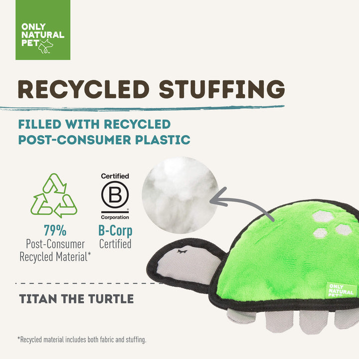 From the inside out, Only Natural Pet Sea Creatures are good for your pet and give waste plastic another life. Made with recycled PET fill, these dog toys reuse plastic that would otherwise end up in a landfill or our oceans. Plus, we know that the most loved dog toys are the ones that last the longest – which is why each toy is double-stitched to keep them intact through the roughest play sessions. Whether your dog likes to chew, thrash, tug, or wrestle, these durable plush toys can handle it!