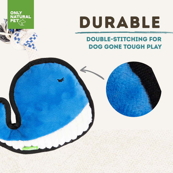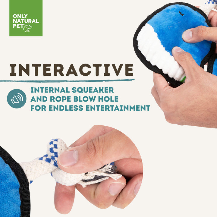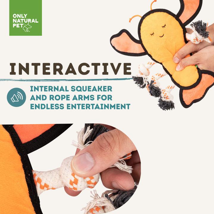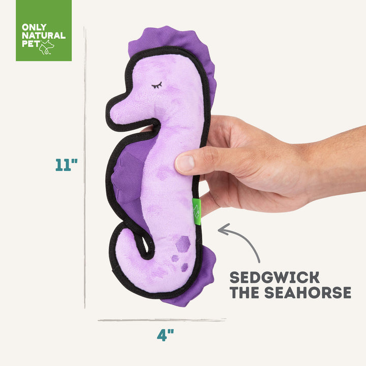 Only Natural Pet Sea Creatures Recycled Plush Dog Toys are charming plush toys that are tough enough to stand up to all of life’s adventures. From the deepest depths of the ocean, these ultra-durable dog toys have surfaced for a boatload of fun. Each Sea Creature has its own unique personality and multiple play features, like rope pulls, crinkle, and squeakers, to keep tails wagging and good times rolling.