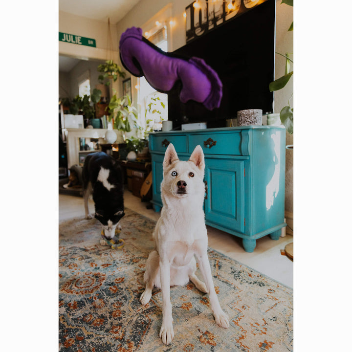 Sedgwick was made for horsing around and long play sessions with your pup. Dogs can crunch away at his crinkle crown and tail, or look for the hidden squeaker inside his plump belly. Whether you toss him, tug him, squeeze him, or chew him, Sedgwick’s double-stitched plush body offers the perfect blend of durability and squishiness.