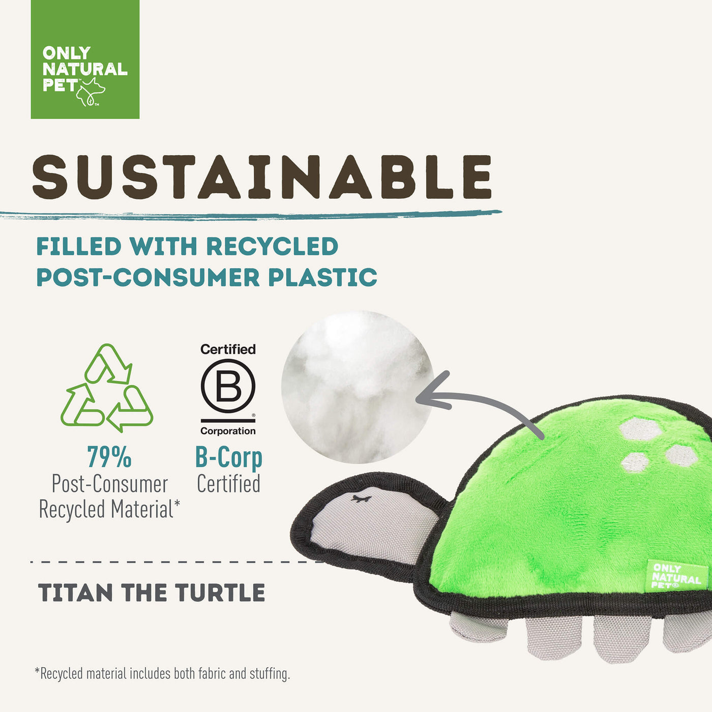 From the inside out, Only Natural Pet Sea Creatures are good for your pet and give waste plastic another life. Made with recycled PET fill, these dog toys reuse plastic that would otherwise end up in a landfill or our oceans. Plus, we know that the most loved dog toys are the ones that last the longest – which is why each toy is double-stitched to keep them intact through the roughest play sessions. Whether your dog likes to chew, thrash, tug, or wrestle, these durable plush toys can handle it!