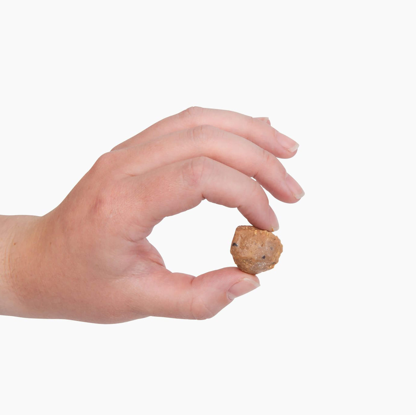 Nope! RawMeals freeze-dried dog food is shelf-stable, so you don’t need to add water to it, freeze it, or refrigerate it. Inside the package, RawMeals freeze-dried food has a soft, nibblet-like form that’s ready to scoop and serve right away. Although you don’t have to add water, you can rehydrate RawMeals with water or bone broth if your dog prefers moist food.