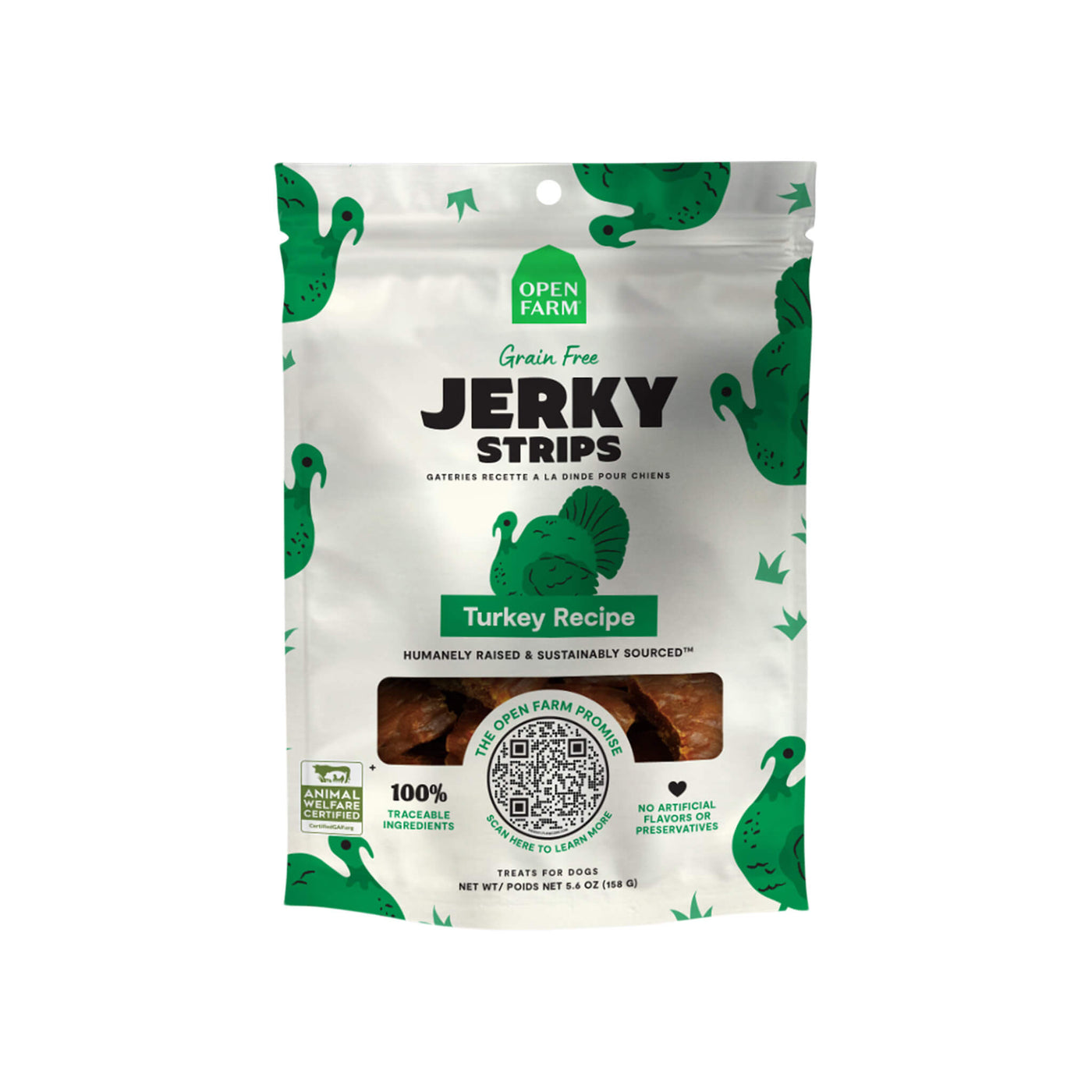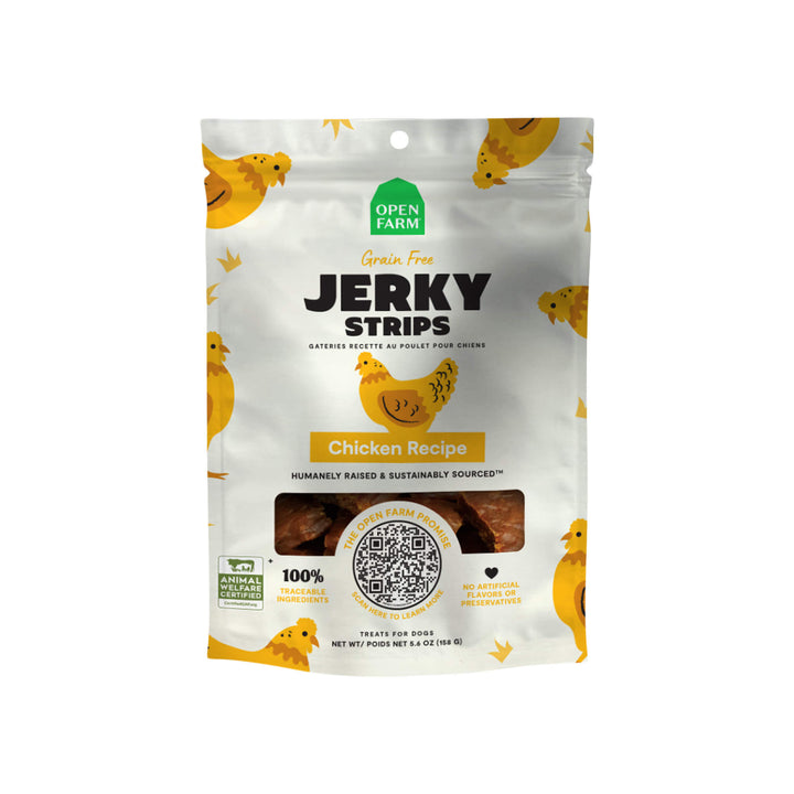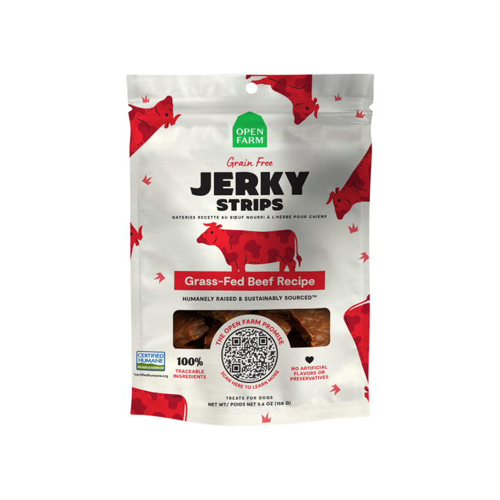 Treat your dog to the flavor they crave and the care they deserve with Open Farm Grain-Free Jerky Strips!