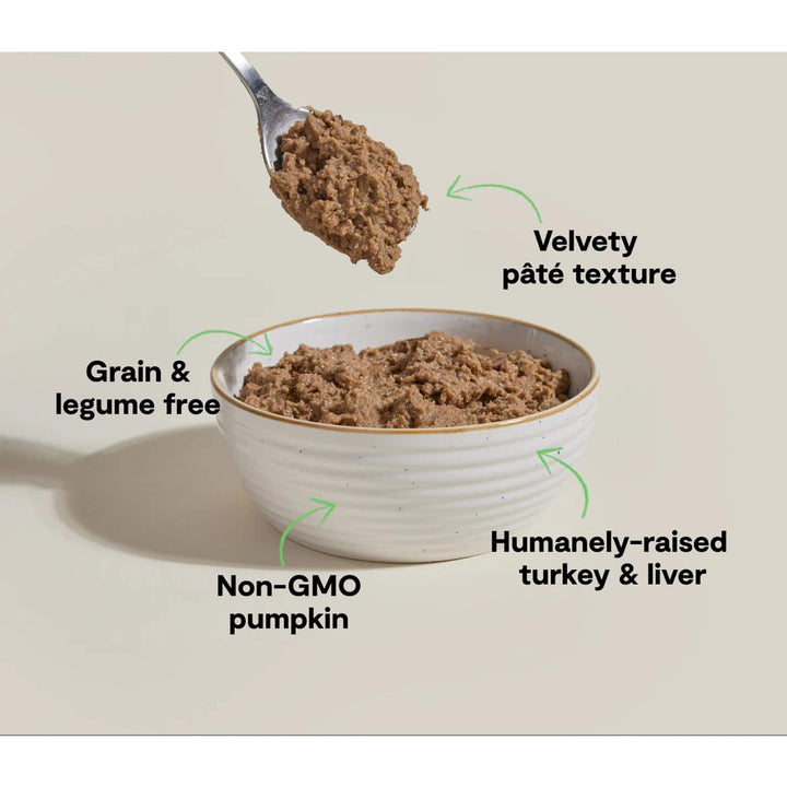 Humanely-raised turkey and turkey liver offer a mild, savory flavor in a moisture-rich pâté that’s gentle and satisfying.Country of origin: USAManufacturer: Open Farm - Ingredients