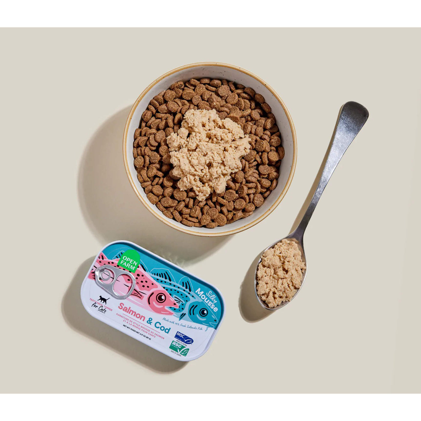 Open Farm Icelandic Wet Topper for Cats is a premium canned fish for cats made with 95% fresh Icelandic fish in a silky mousse texture. This high-moisture topper adds variety and flavor to your cat’s bowl while supporting hydration and overall wellness.