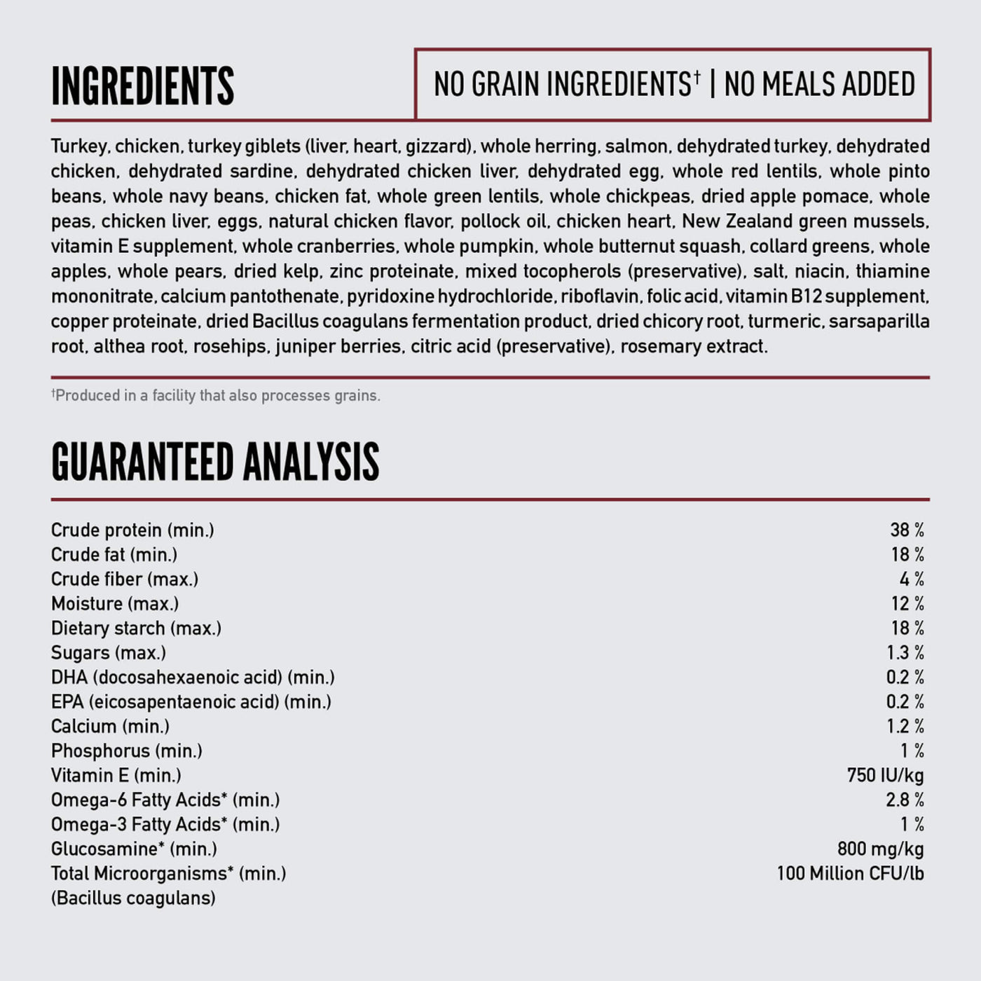 The first five ingredients are fresh or raw poultry and fish, preserved through refrigeration or freezing at peak freshness