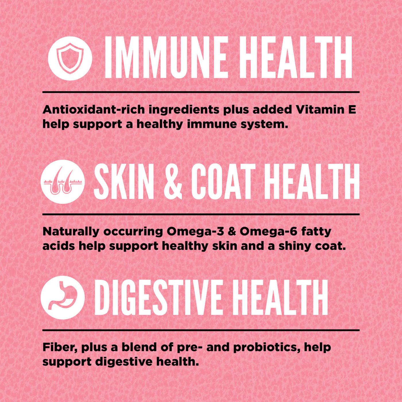 Contains omega-3 and omega-6 fatty acids to promote healthy skin and a shiny coat