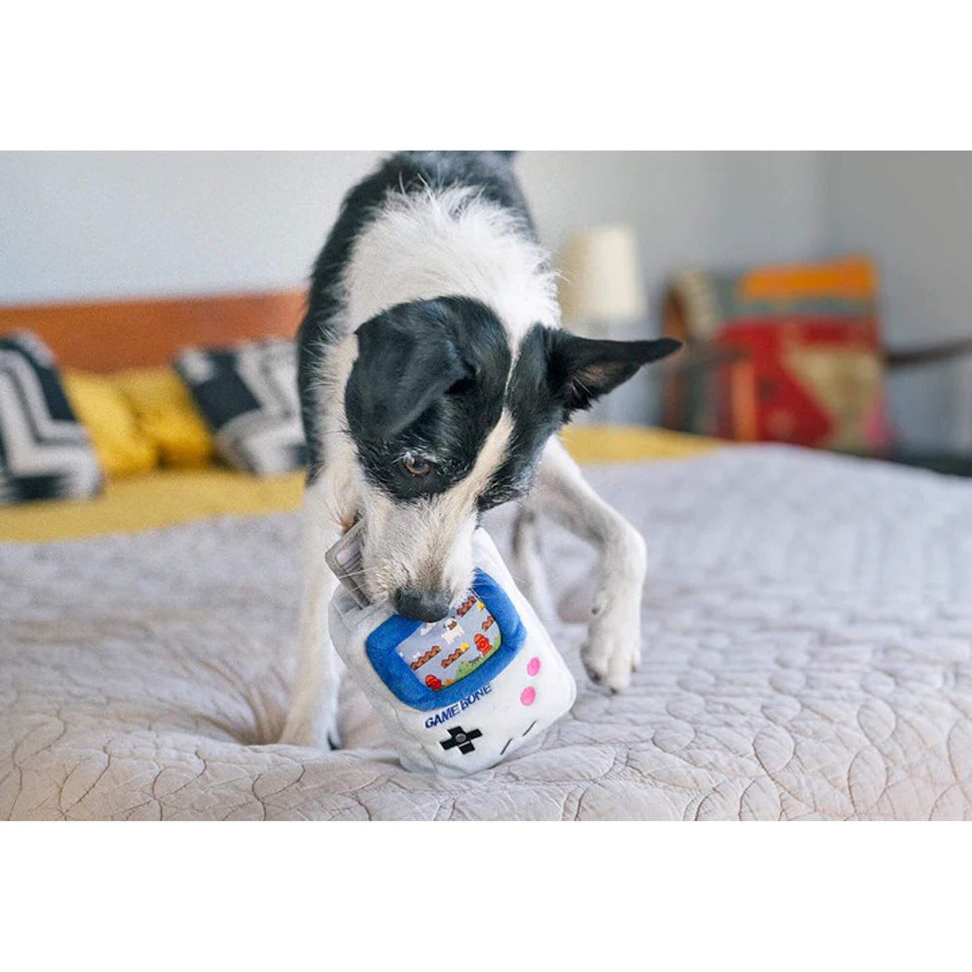 Turn back time with the P.L.A.Y. 90's Classic Dog Toys—a collection that includes a dog guitar toy along with other retro favorites like boom boxes, cassette tapes, and floppy disks. Each plush toy is designed to channel the fun and flair of the 90's while delivering squeaky, soft play dogs love.
