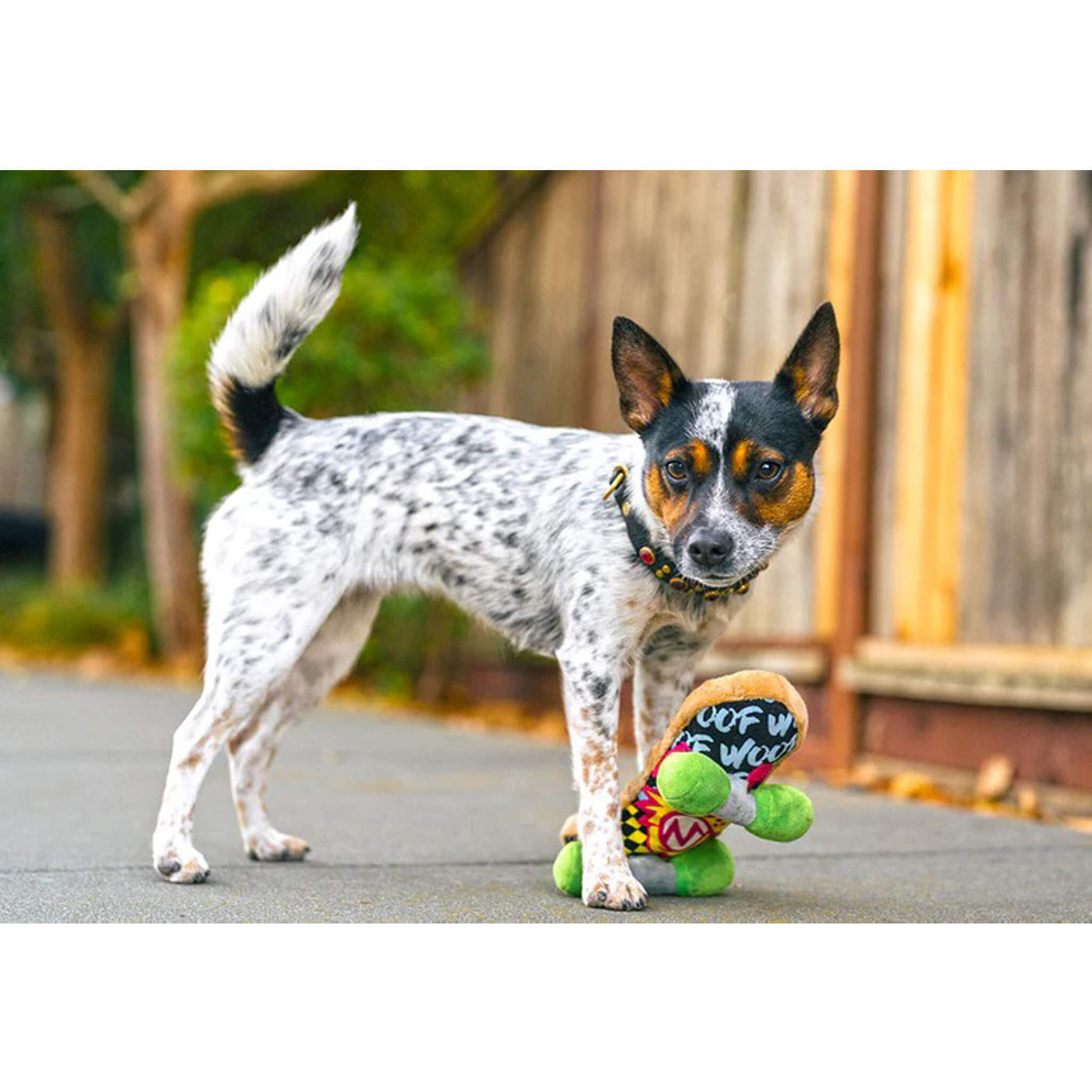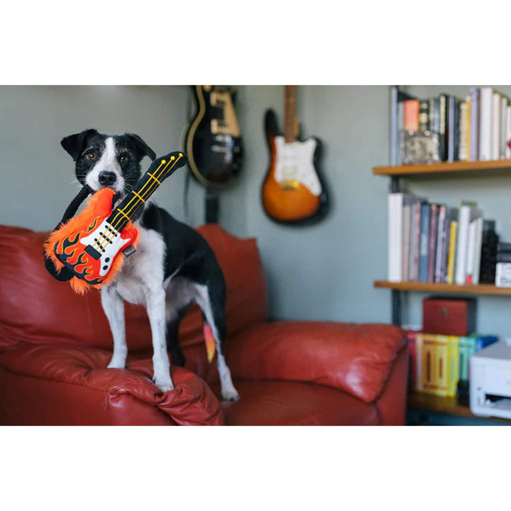 Made with eco-friendly PlanetFill® and reinforced stitching, the P.L.A.Y. 90's Classic Dog Toys are built for safe, durable fun. The dog guitar toy stands out with its bold design and hidden squeaker, making it perfect for pups who love to rock out during playtime.