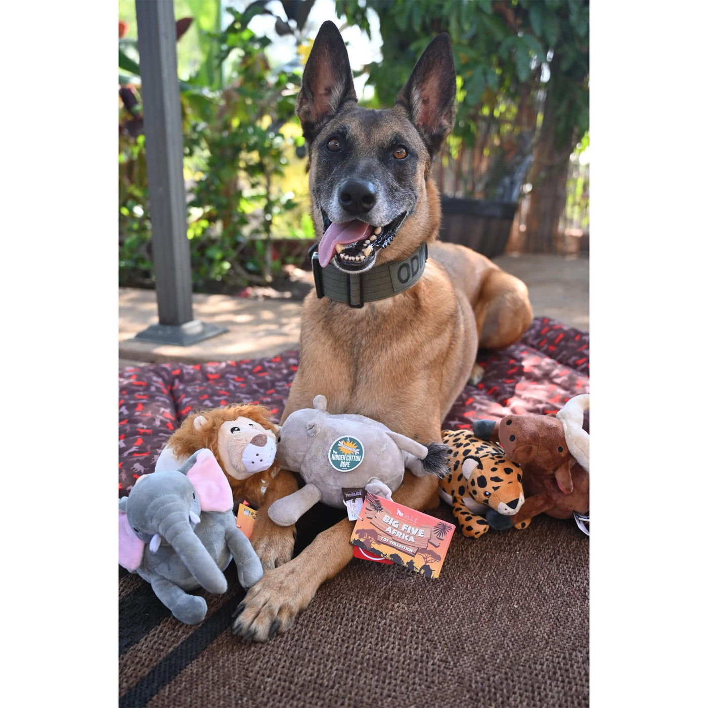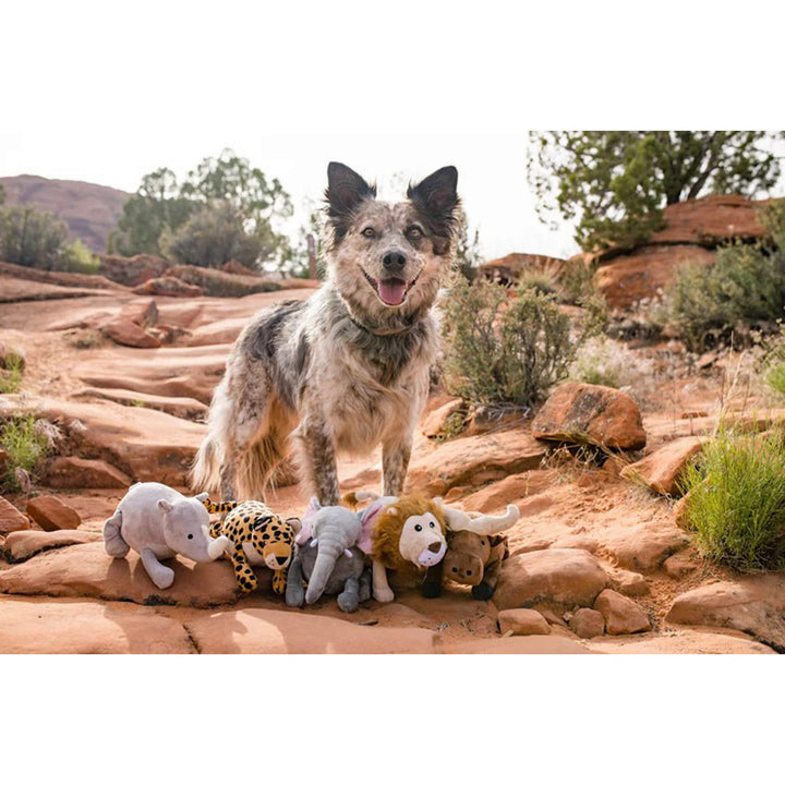 Celebrate the wonders of the wild with the P.L.A.Y. Big Five of Africa Collection Dog Toys, featuring an elephant toy for dogs alongside plush versions of the lion, leopard, rhino, and buffalo. Each toy is thoughtfully crafted to reflect iconic African wildlife while offering engaging textures and squeaky fun.