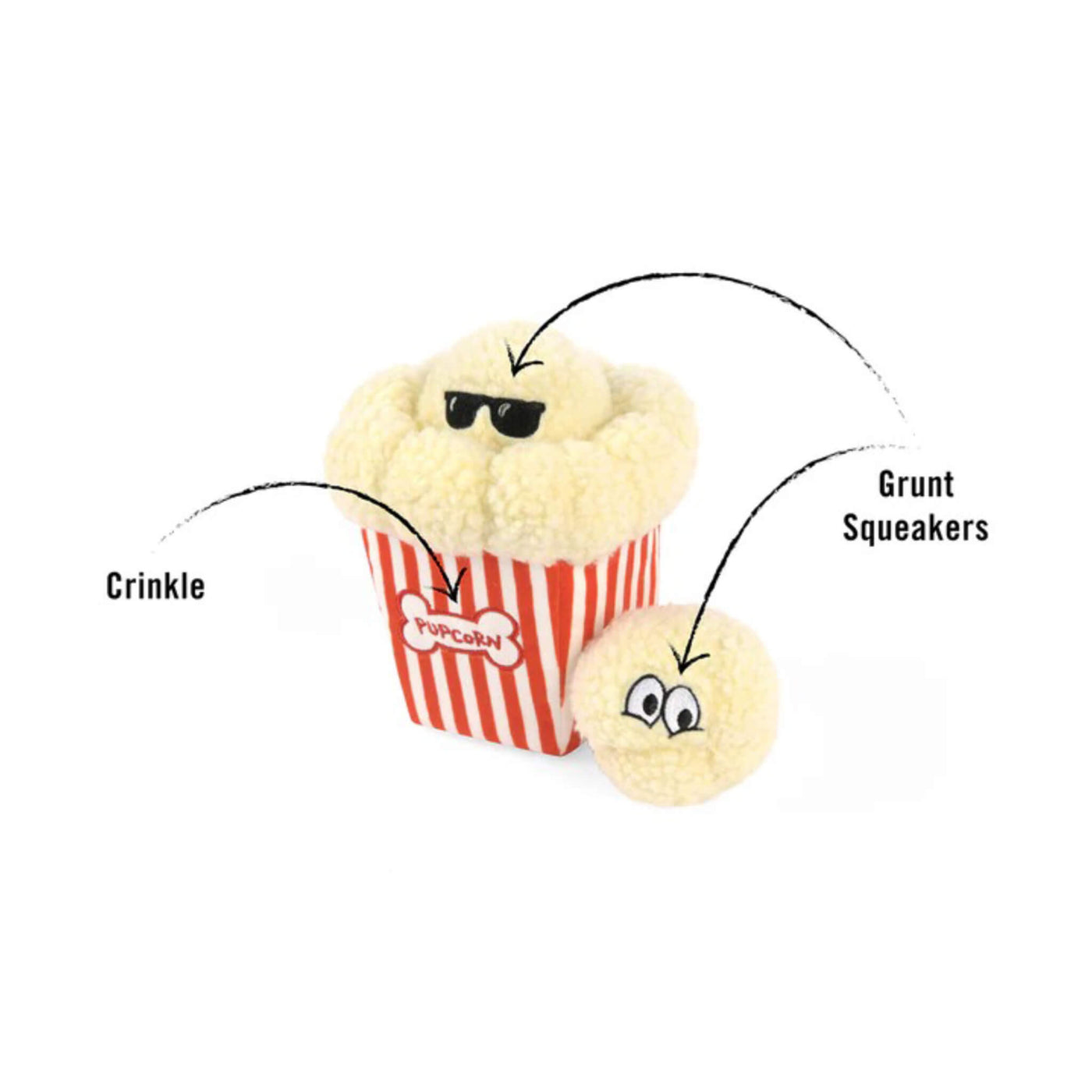 Popcorn & Beer Mug Dog Toy with Cinematic Style & Squeaky Fun