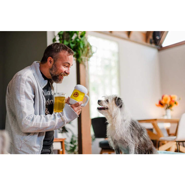 Hand-crafted with reinforced stitching and filled with eco-friendly PlanetFill® made from recycled plastic bottles, P.L.A.Y. Hollywoof Collection Dog Toys are machine washable and meet infant toy safety standards. The beer mug dog toy is perfect for pups who love interactive textures and a good squeak during their blockbuster play sessions.