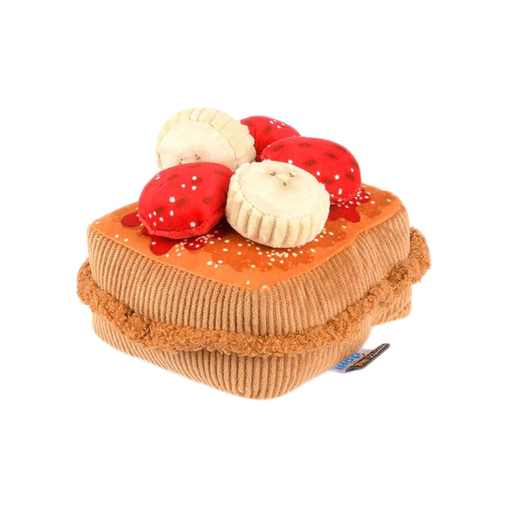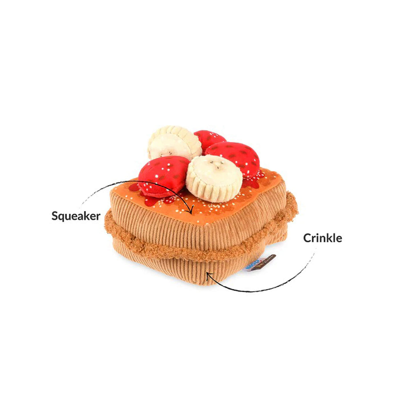 Crafted with eco-friendly PlanetFill® and reinforced stitching, the P.L.A.Y. IHOP Collection Dog Toys are safe, durable, and machine washable. Each breakfast-themed dog toy meets strict safety standards and features engaging textures and sounds to keep dogs entertained.