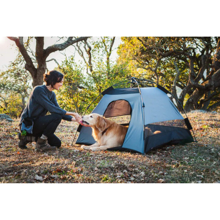 P.L.A.Y. Outdoor Dog Tent is a rugged tent for dogs designed for camping, hiking, and backyard adventures. Made with high-performance 600D PE fabric, this portable pet tent features a collapsible frame, mesh sides for ventilation, and a water-resistant roof to keep your pup dry and comfortable outdoors.
