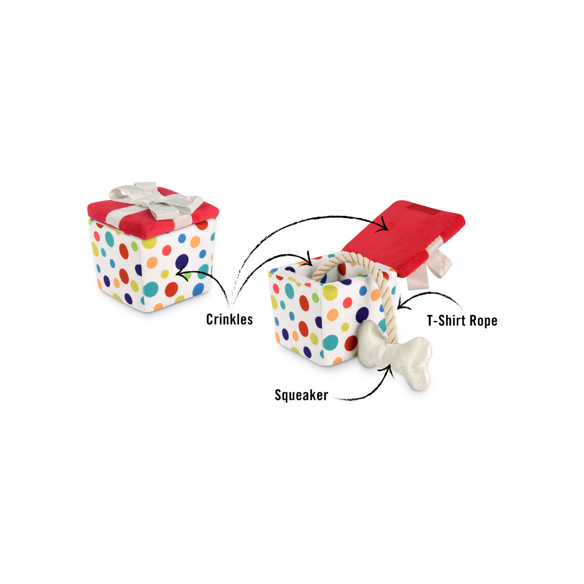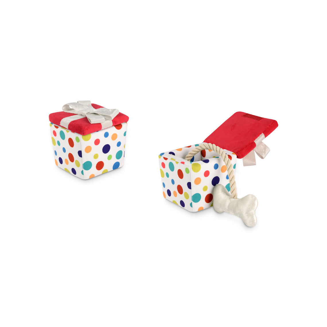 The P.L.A.Y. Party Time Plush Collection is all about confetti-colored fun, with squeaky cupcakes, bubbly bottles, and crinkly hats your pup will love. These birthday toys for dogs are soft, durable, and bursting with personality—perfect for celebrating milestones or just making every day feel special. Explore more tail-wagging fun from P.L.A.Y.