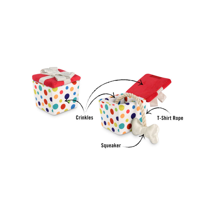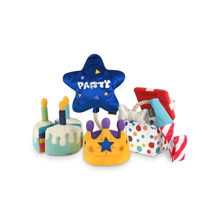 The P.L.A.Y. Party Time Plush Collection is all about confetti-colored fun, with squeaky cupcakes, bubbly bottles, and crinkly hats your pup will love. These birthday toys for dogs are soft, durable, and bursting with personality—perfect for celebrating milestones or just making every day feel special. Explore more tail-wagging fun from P.L.A.Y.