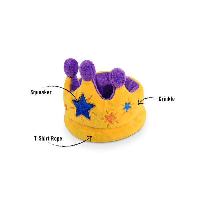 Give your King or Queen the crown they deserve! This will let every dog know whose day this is. This elegant design features a squeaky star, crinkly perimeter and a rope base for stability and maybe just a little chewing.