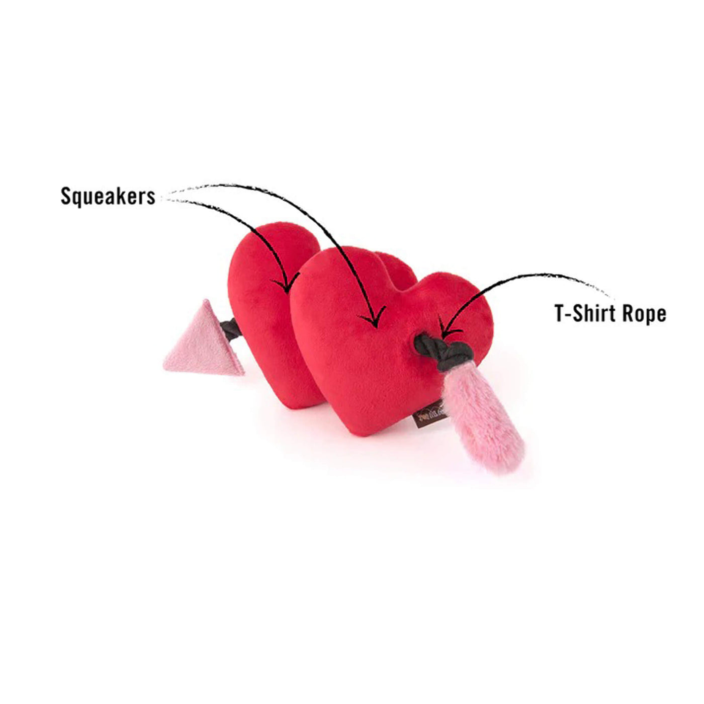 Hand-crafted with reinforced stitching and filled with eco-friendly PlanetFill® made from recycled plastic bottles, P.L.A.Y. Puppy Love Collection Dog Toys are safe, durable, and machine washable. These valentines dog toys meet infant toy safety standards and include crinkles, squeakers, and tug-friendly textures for interactive fun.