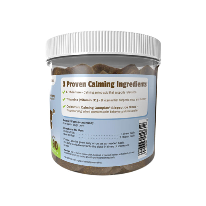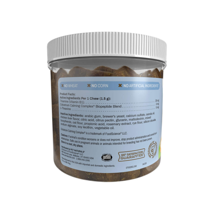 These soft chews are formulated with a blend of natural ingredients to help reduce anxiety and promote relaxation in pets. Key ingredients include L-theanine, known for supporting relaxation without sedation, Thiamine (Vitamin B1), which helps support mood and nervous system function, and Colostrum Calming Complex®, a proprietary blend of bioactive proteins that promote calm behavior.