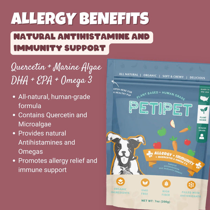 With Petipet Allergy & Immune Support Dog Treats, added wellness support feels simple and approachable. These organic allergy treats for dogs provide functional support that complements a balanced diet and daily lifestyle.