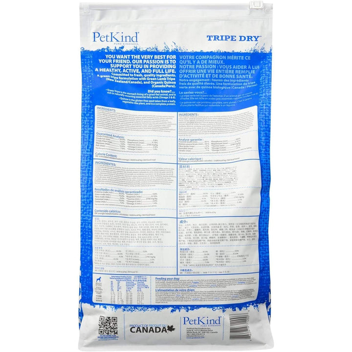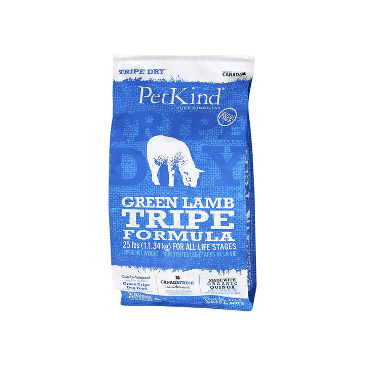 Green Tripe is a nutrient-loaded ingredient great for with dogs with sensitive stomachs or picky palates. Green Tripe features high levels of Omega 3 & 6 essential fatty acids and Oleic Avid and 70% of protein in Green Tripe is composed of 7 major amino acids which support many facets of your dogs health, including: muscle and joint health, sugar and fat metabolization, digestion, a strong immune system, UT health and the circulatory system. PetKind Grain-Free Dry Dog Food was formulate to support and sustain growth in dogs of all life stages.