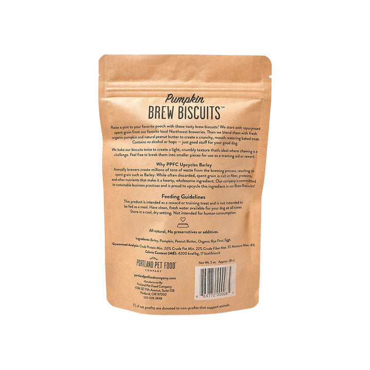 Made with pumpkin and brewery grains, these crunchy biscuits deliver a toasty, satisfying bite dogs adore.Country of origin: USAManufacturer: Portland Pet Food Company - Ingredients