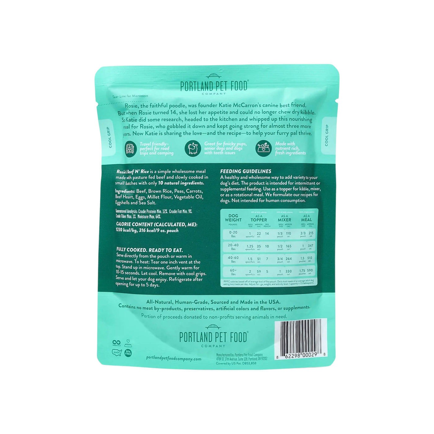 A hearty recipe with USA-sourced beef and rice, slow-cooked into a wholesome meal that’s easy to digest and full of comforting flavor.Country of origin: USAManufacturer: Portland Pet Food Company - Ingredients