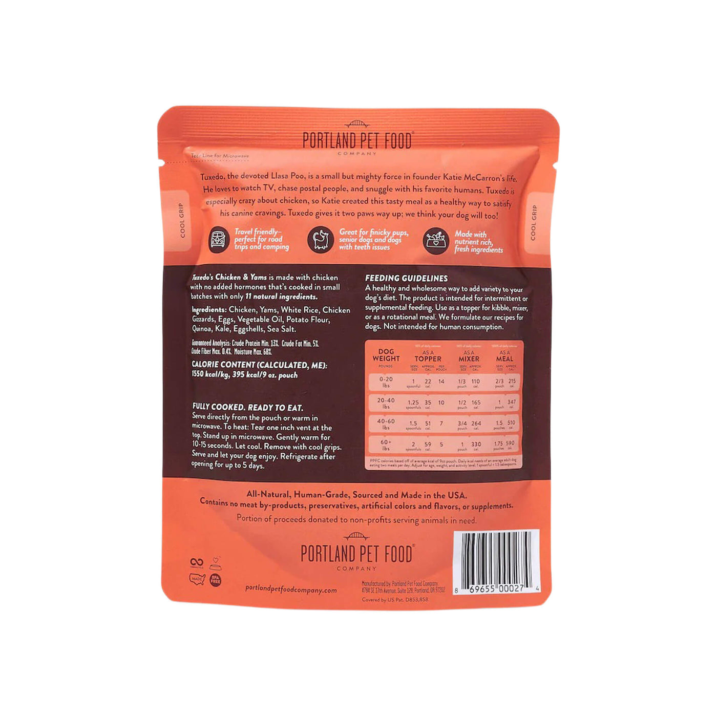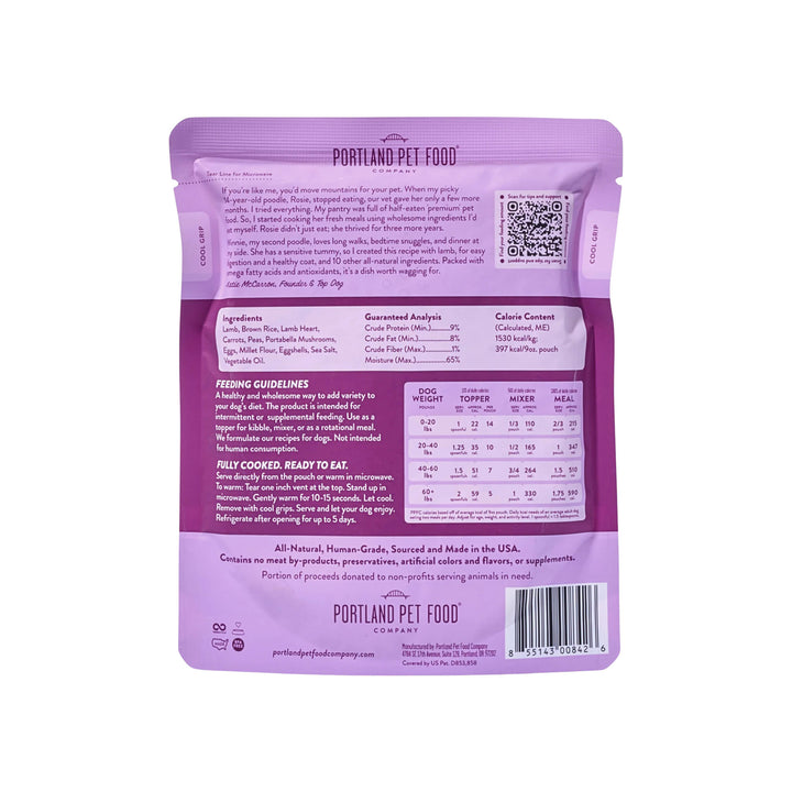 Free from rendered meals, by-products, and artificial additives, Portland Pet Food Grain Inclusive Homestyle Dog Meals provide clean, homestyle nutrition. This gently cooked dog food with grains is fully cooked and ready to serve, making mealtime simple and convenient.