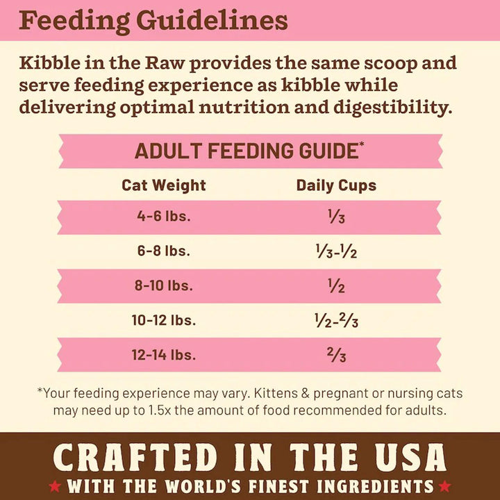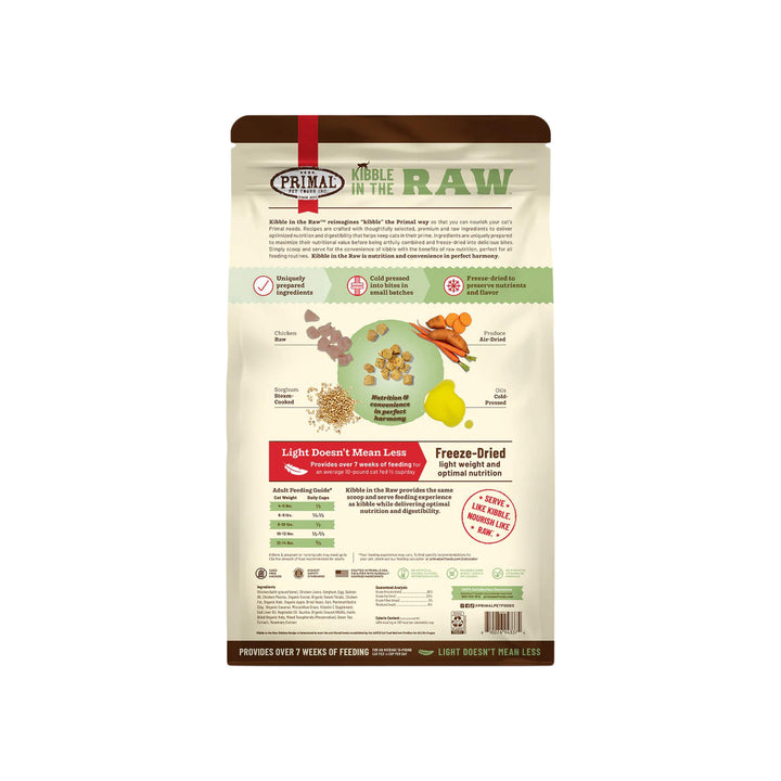 Primal Kibble in the Raw Chicken Recipe is formulated to meet the nutritional levels established by the AAFCO Cat Food Nutrient Profiles for all life stages.