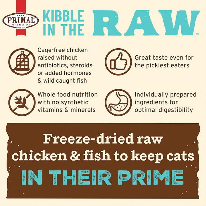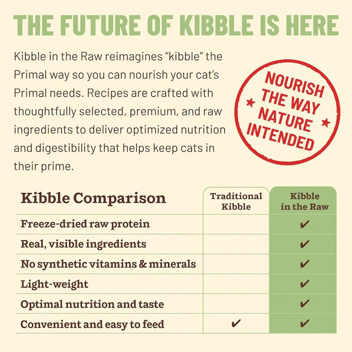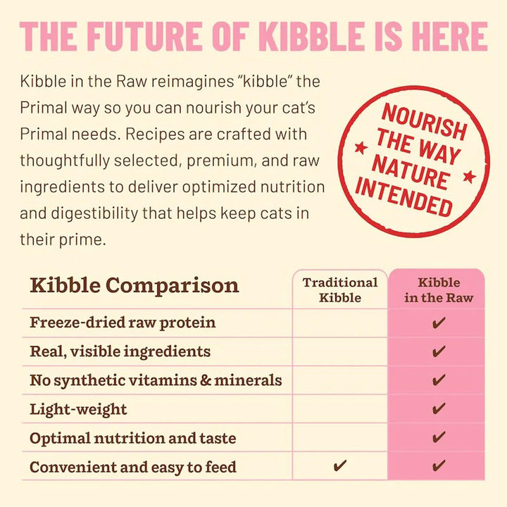 Give your cat the best of both worlds with Primal Feline Kibble in the Raw—a premium freeze-dried cat food designed for optimal health and vitality!