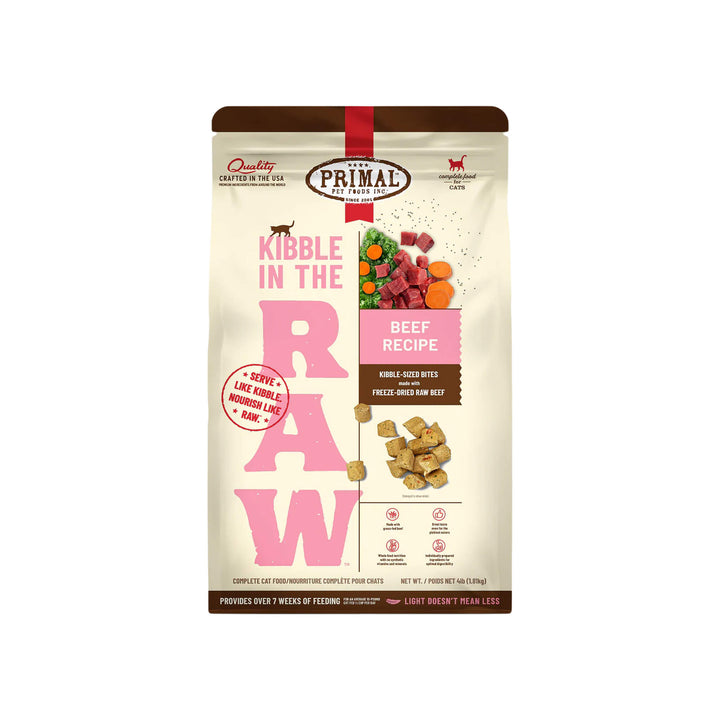 Primal Feline Kibble in the Raw brings the benefits of raw feeding to cats in an easy-to-serve, freeze-dried cat food format. Made with thoughtfully selected, high-quality ingredients, this formula provides optimal nutrition and digestibility to support feline health. Each bite is packed with essential proteins and nutrients, ensuring your cat gets the best of raw nutrition in a kibble-style meal.