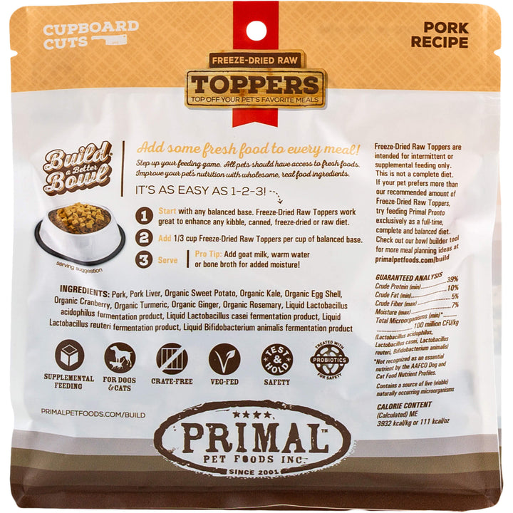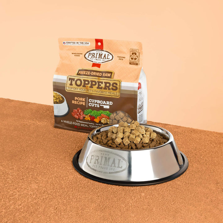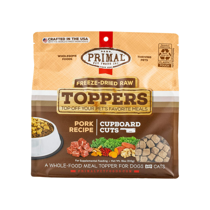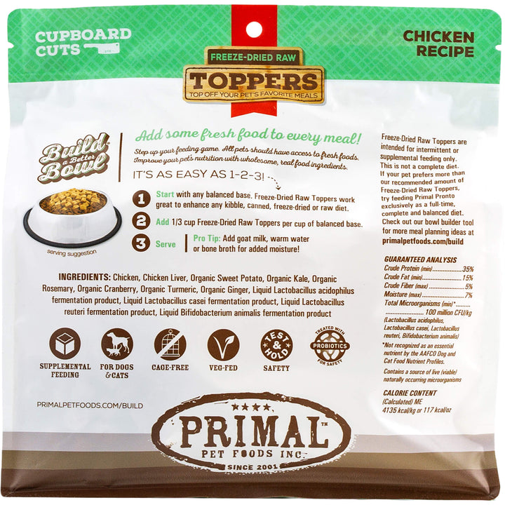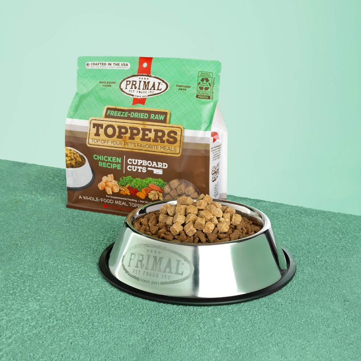 Primal Pet Foods Cupboard Cuts Freeze Dried Cat & Dog Food Topper is intended for intermittent or supplemental feeding only. This is not a complete diet.